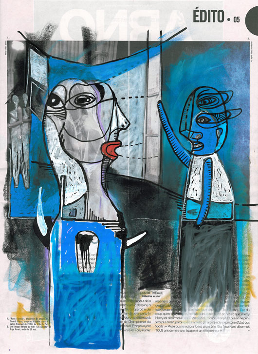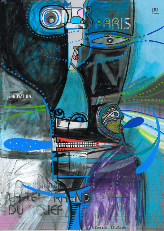 J'y vois des relents Dada, les détournements post-68 des situationnistes, un soupçons de Duchamp. Des couleurs, encore des couleurs et ces formes..Formes déformées, déformation de la forme...(façon Picasso ???) revu et corrigé par toi.....Métamorphoses. Je repense à Kafka. Et si tous cela n'étaient que kafkaïen....Je continue le voyage visuel et graphique. Douce rêverie et délire d'écriture sous l'inspiration de tout cela !!!