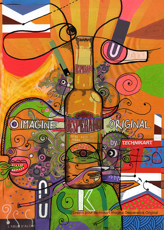 Métamorphose graphique de la page Desperados imaginée par Dreeks pour Technikart dans A Nous Paris #482