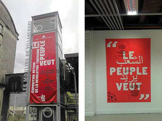 Après la pause déjeuner et un excellent repas servi et préparé par les élèves de seconde (décidément, on mange vraiment bien dans un lycée hôtelier!), nous achevons notre séjour Grenoblois en accompagnant une classe de seconde au Centre du Graphisme d'Échirolles, et visitons ensemble l'exposition, "Le peuple veut" où comment les graphistes et étudiants tunisiens firent aussi leur révolution par l'affiche et le dessin.