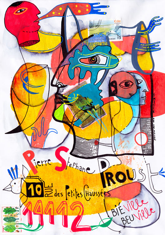 Il y a quelques jours Pierre Stephane Proust me faisait parvenir son livre "Le Temps retrouvé" consacré à l'Art Postal. Nous nous sommes rencontrés lors du dernier festival d'Art Postal de Vienne où Pierre Stéphane présentait une partie de sa collection d'enveloppes où se côtoient Prévert, Matisse, Cueco, Erro, Trémois, Ben et bien d'autres, ainsi que quelques boîtes aux lettres "extraordinaires" de sa fabrication.
