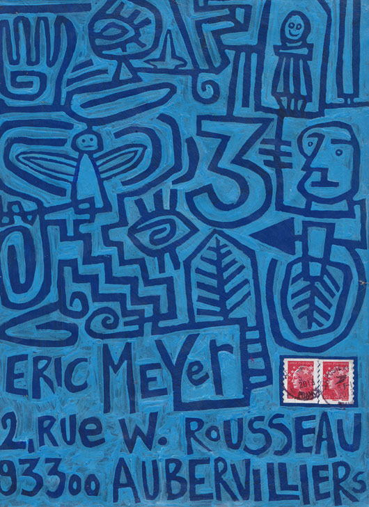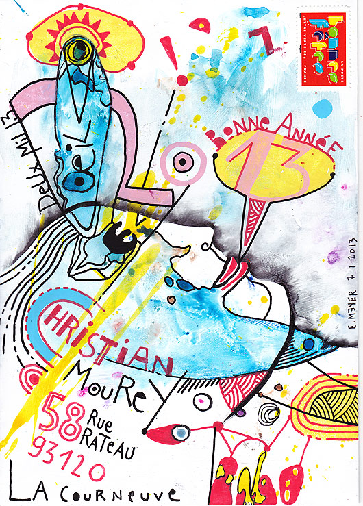 mail art, art postal, figuration colorée, dessin, plume, encre, eric meyer, Christian Mourey