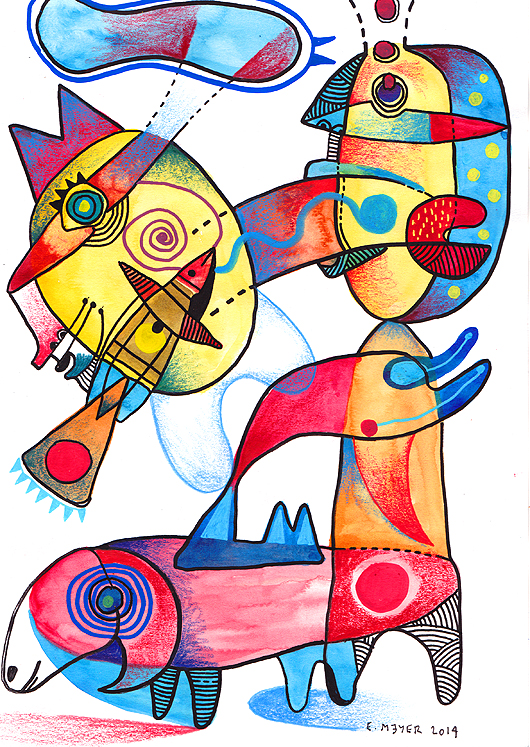 eric meyer, dessin, dessin contemporain, photographie, troupeau, mouton, figuration, aquarelle, feutres poscas, crayons de couleurs