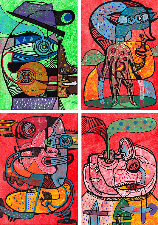 eric meyer, peintre, peinture, dessin, contemporain,figuration, libre, brut, couleurs, poscas, traits, lignes, feutres