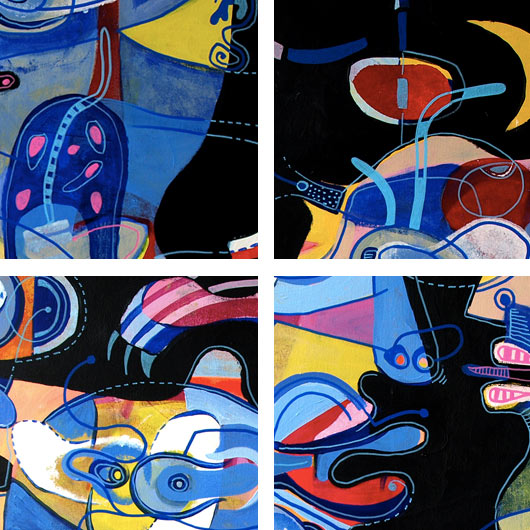 La nuit est tombée trop vite - acrylique / feutres Posca sur toile - 100 X 100 cm - détails