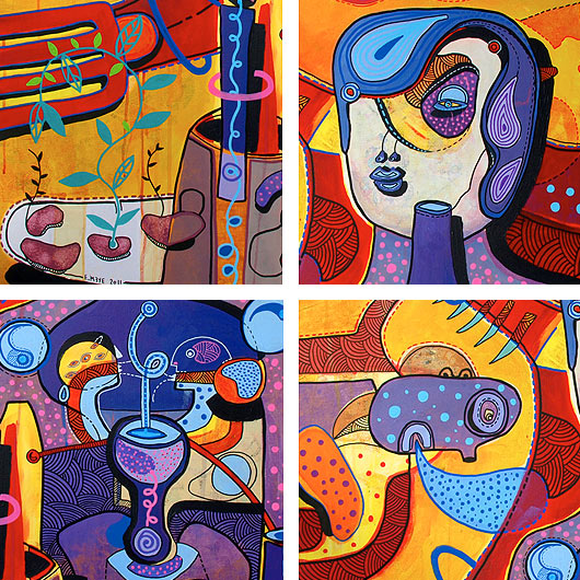 Cons fusion - acrylique, feutres Poscas,pastels / Toile - 120 x 120 cm - 2014